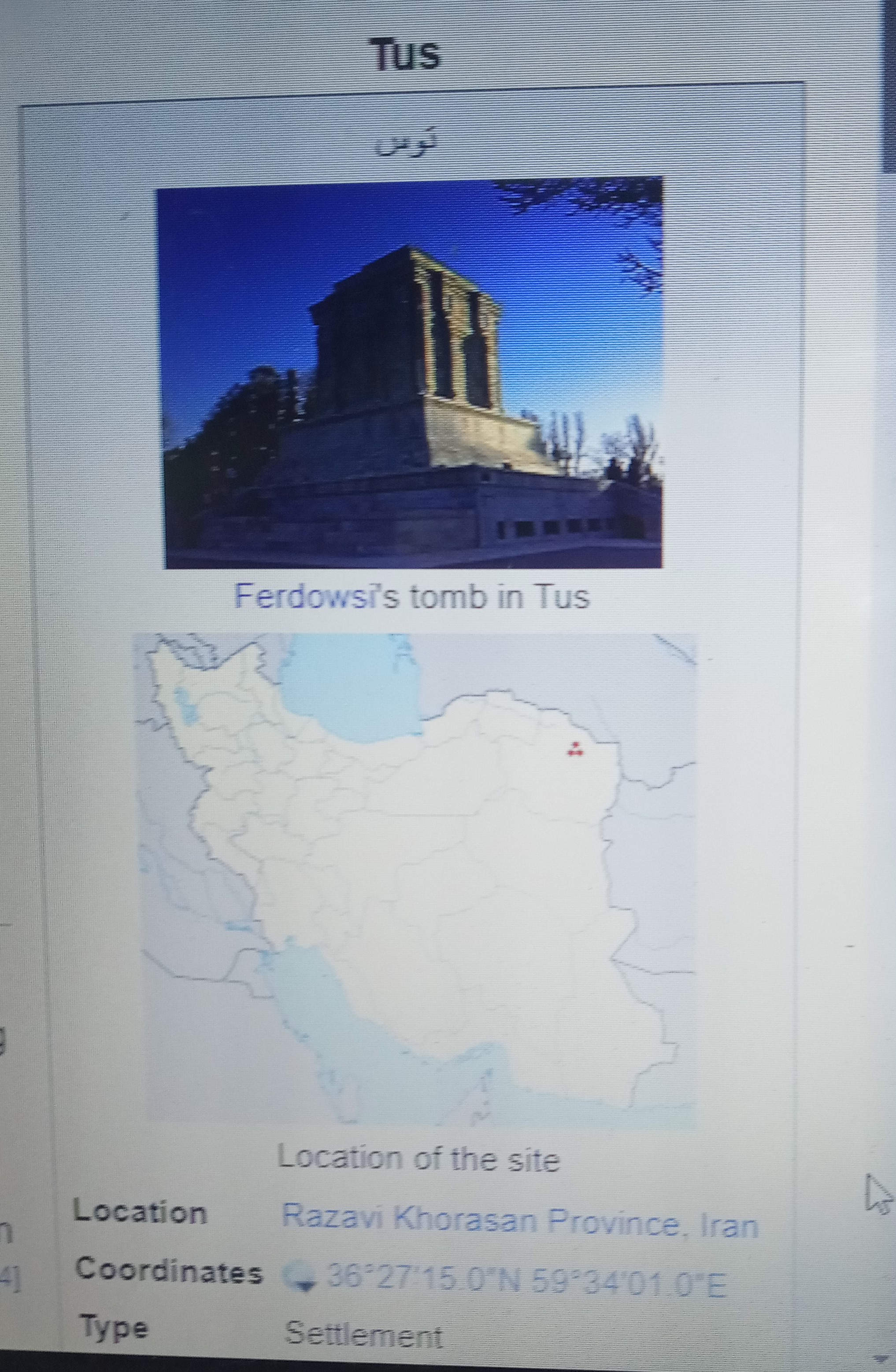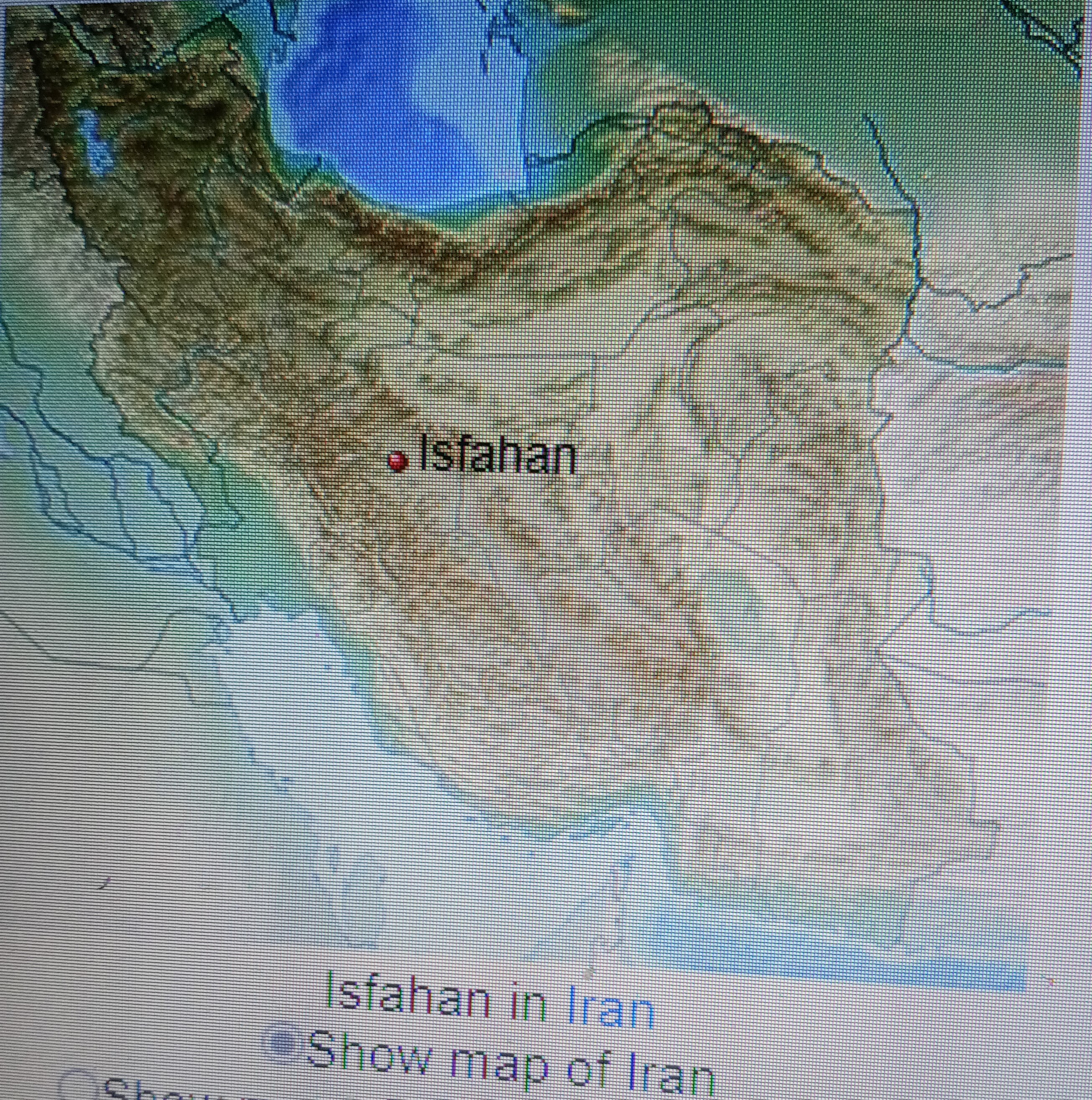 Iran에서의 Tus도시와 Isfahan 의 위치