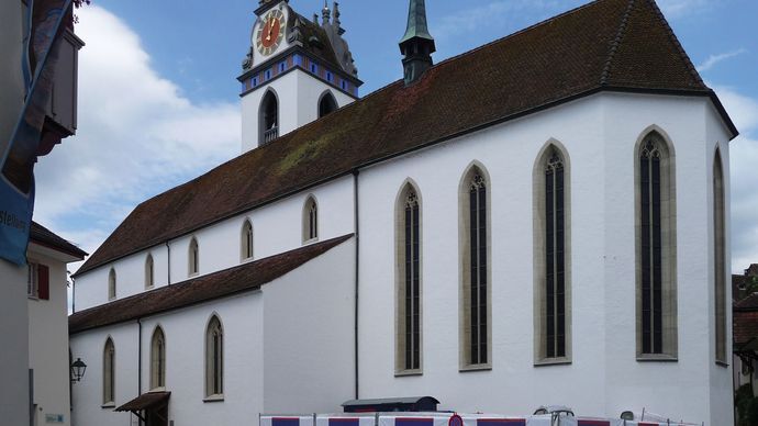 Founded about 1240 by the counts of Kyburg, it passed to the Habsburgs in 1264 and was taken by the Bernese in 1415. In 1798 it became the capital of the Helvetian Republic. Notable landmarks include several 13th-century towers, the town church (1471), the town hall (1762), and a cantonal library, containing a Bible with marginal notes made by the religious reformer Huldrych Zwingli. To the northeast is the ruined Habsburg, or Habichtsburg (Hawk’s Castle), the original home of the Habsburg family. The medieval Lenzburg castle, located east of Aarau, houses a historical museum and a conference centre. There is considerable industry in the newer parts; manufactures include beverages and food products, electrical goods, precision instruments, and machines. The population is largely German-speaking, and the majority of the residents are Protestants. In 2010 the village of Rohr was merged with Aarau. Pop. (2015 est.) 20,707.