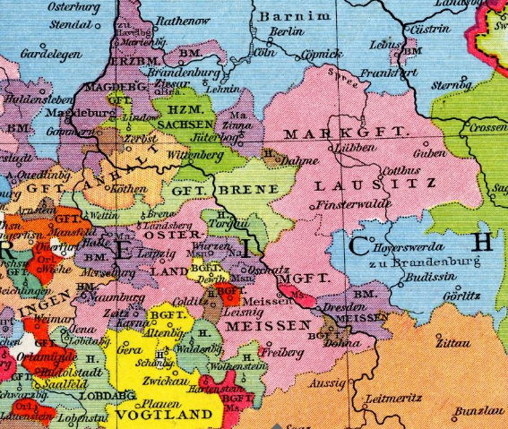 Marches of Lusatia and Meissen (pink) about 1260 (source : Wikipedia)