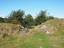 The archaeological remains are located in the north part of Björkö and span an area of about 7 hectares (17 acres). The remains are both burial-sites and buildings, and in the south part of this area, there is also a hill fort called "Borgen" ("The Fortress").[21] The construction technique of the buildings is still unknown, but the main material was wood. An adjacent island holds the remains of Hovgården, an estate that housed the King's retinue during visits.