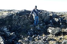 The Thule Tradition lasted from about 200 BC to 1600 AD around the Bering Strait, the Thule people being the prehistoric ancestors of the Inuit who now live in Northern Labrador.[4] Thule culture was mapped out by Therkel Mathiassen, following his participation as an archaeologist and cartographer of the Fifth Danish Expedition to Arctic America in 1921–1924. He excavated sites on Baffin Island and the northwestern Hudson Bay region, which he considered to be the remains of a highly developed Eskimo whaling culture that had originated in Alaska and moved to Arctic Canada approximately 1000 years ago.[5] There are three stages of development leading up to Thule culture; they are Okvik/Old Bering Sea, Punuk, Birnirk, and then Thule culture. These groups of peoples have been referred to as "Neo-Eskimo" cultures, which are differentiated from the earlier Norton Tradition.[5]