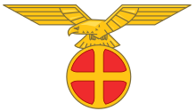 The Norwegian Nasjonal Samling party of 1933–1945 relied heavily on Nordic and Viking symbolism and used a crest of a raven clutching a sun cross on documents and uniform insignias, particularly under the Quisling regime.