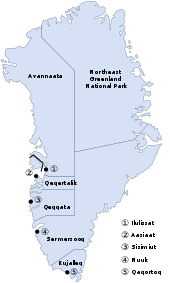 | 5 | Qaqortoq | Kujalleq | 3,050 | 15 | Qaanaaq | Avannaata | 646 | ||