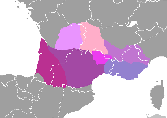 프랑스의 Occetians 언어 사용 지역 (자료 : 위키피디아)