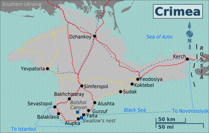 Map of Crimea showing Sudak Fortress (source : Wikipedia)
