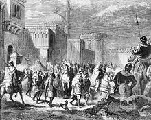The next Umayyad governor, al-Samh, crossed the Pyrenees in 719 and conquered Narbonne (Arbuna to the Arabs) in that year or the following (720).[2] According to the Chronicle of Moissac, the inhabitants of the city were slaughtered.[4] The fall of the city ended the seven-year reign of Ardo and with it the Visigothic kingdom, but Visigothic nobles continued to hold the Septimanian cities of Carcassonne and Nîmes.[2][3] Nevertheless, al-Samh established garrisons in Septimania (721), intending to incorporate it permanently into al-Andalus.[3]