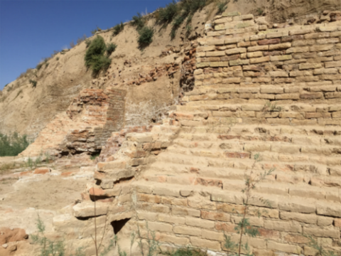 The remaining brick stone wall (depth 10m) of the Great wall of Gorgan, Iran