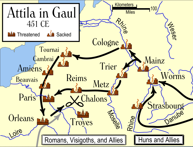 Attila in Gaul in 451 AD (source : Wikipedia)