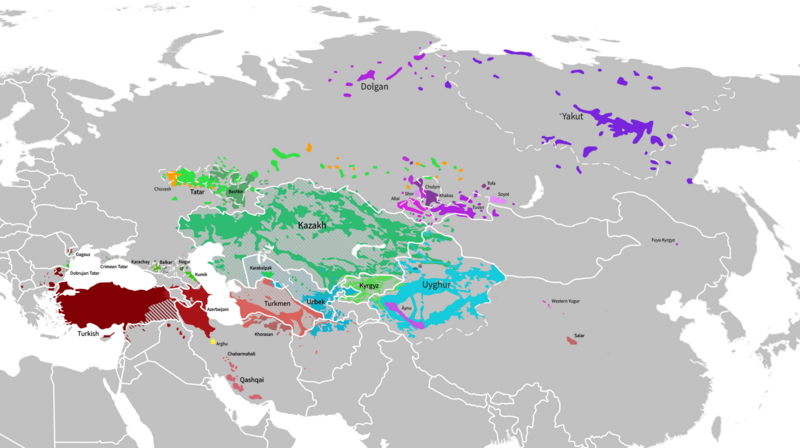 Turkic languages distribution map (source : Wikipedia)