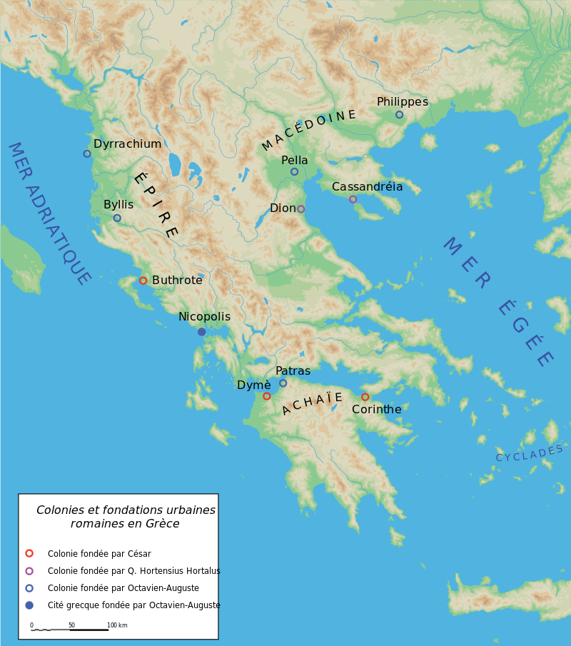 Map of Roman cities founded in Greece (source : Nicopolis, Wikipedia)