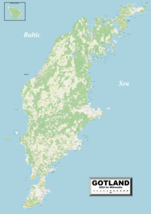 Gotland (/ˈɡɒtlənd/, Swedish: [ˈɡɔ̌tːland] ⓘ;[4] Gutland in Gutnish),[5] also historically spelled Gottland or Gothland (/ˈɡɒθlənd/),[6] is Sweden's largest island.[7][8][9][10] It is also a province/county (Swedish län), municipality, and diocese. The province includes the islands of Fårö and Gotska Sandön to the north, as well as the Karlsö Islands (Lilla and Stora) to the west. The population is 61,001,[2] of which about 23,600 live in Visby, the main town.[1] Outside Visby, there are minor settlements and a mainly rural population. The island of Gotland and the other areas of the province of Gotland make up less than one percent of Sweden's total land area. The county formed by the archipelago is the second smallest by area and is the least populated in Sweden. In spite of the small size due to its narrow width, the driving distance between the furthermost points of the populated islands is about 170 kilometres (110 mi).[11]