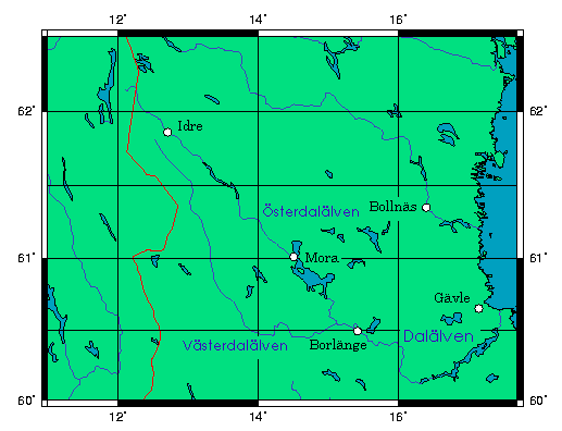Dalalven 강을 좀더 자세히 보자. Acksjoalven강이 있는 Varmland county 바로 위에 있는 Dalarna county에 위치해 있다. Dalalven강은 남쪽의 Vasterdalalven (서 달강)과 북쪽의 Osterdalalven (동 달강)의 둘로 흐르다가 Djuras에서 합쳐져 동북으로 흘러 발트해로 들어 간다. (아래 두 지도 참조) 즉 위의 약수의 조건 1,2,3 번을 충족한다.