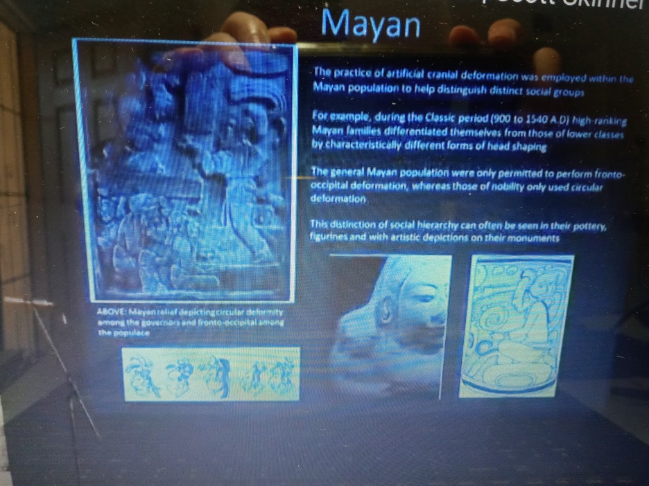 "Across the Americas, in various tribes, infants had their heads bound and shaped by their parents. Both the Mayans and the Inca shaped their children’s skulls, as did the Choctaw and the Chinookan tribes in what is now the United States. Their reasons must have been the same, to allow for the child to fit into the fabric of their societies, and to signify class. For the Maya, it also held a religious significance.