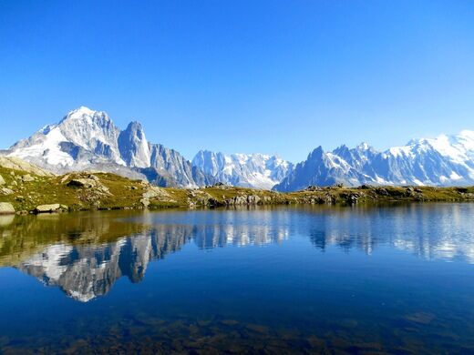 Mont Blanc from the lower lake (source : Atlas Obscura)