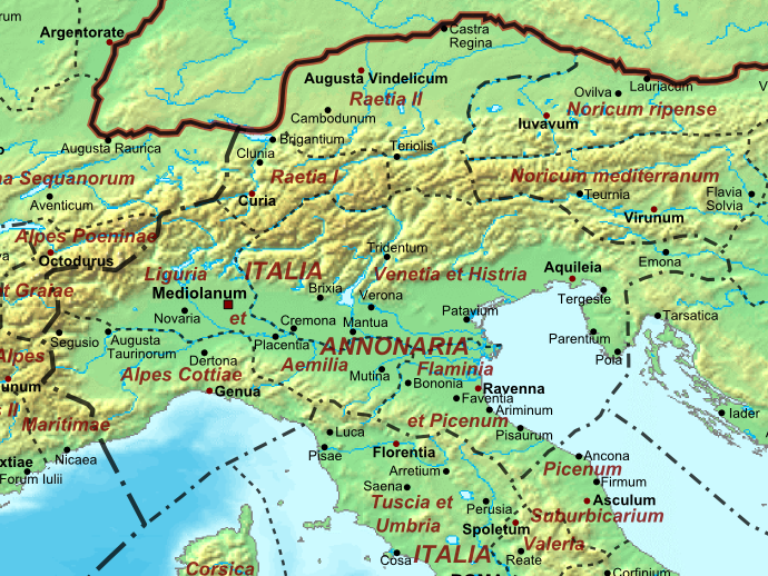 상기 지도에서 Etruscan 지역에 있는 Verona는 Etruscan문명의 영향을 받았다고 추정된다.