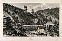 The salt deposits in Bex were the first ones discovered in Switzerland. In the 15th century, a salt source is mentioned in the area, but it was not until 1554 that a large deposit was discovered in Panex. Production of the salt began shortly thereafter. In 1582 a salt works was built in Roche. Initially the salt works were run by Bernese patricians, and then foreign nobles. In 1685 the salt mines came under the direct control of the Bernese state. At the beginning of the 18th century, it was entrusted to a general director, the most famous one being Albrecht von Haller.[4]