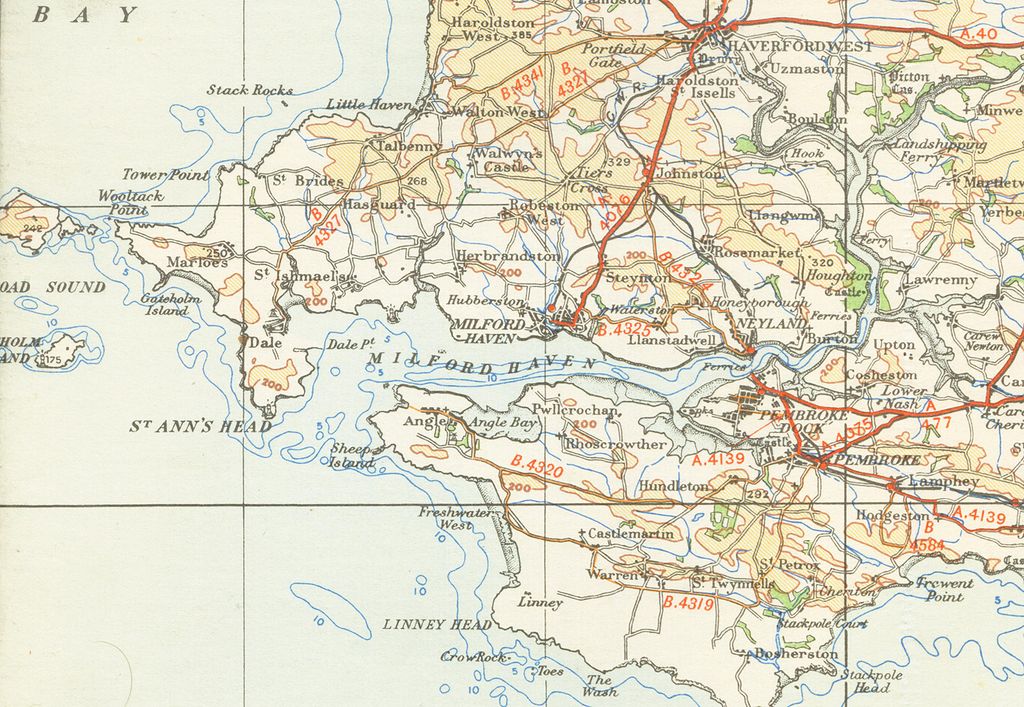 "Pembrokeshire's coast is its most dramatic geographic feature, created by the complex geology of the area. It is a varied landscape which includes high sea cliffs, wide sandy beaches, the large natural harbour of Milford Haven, and several offshore islands which are home to seabird colonies..........