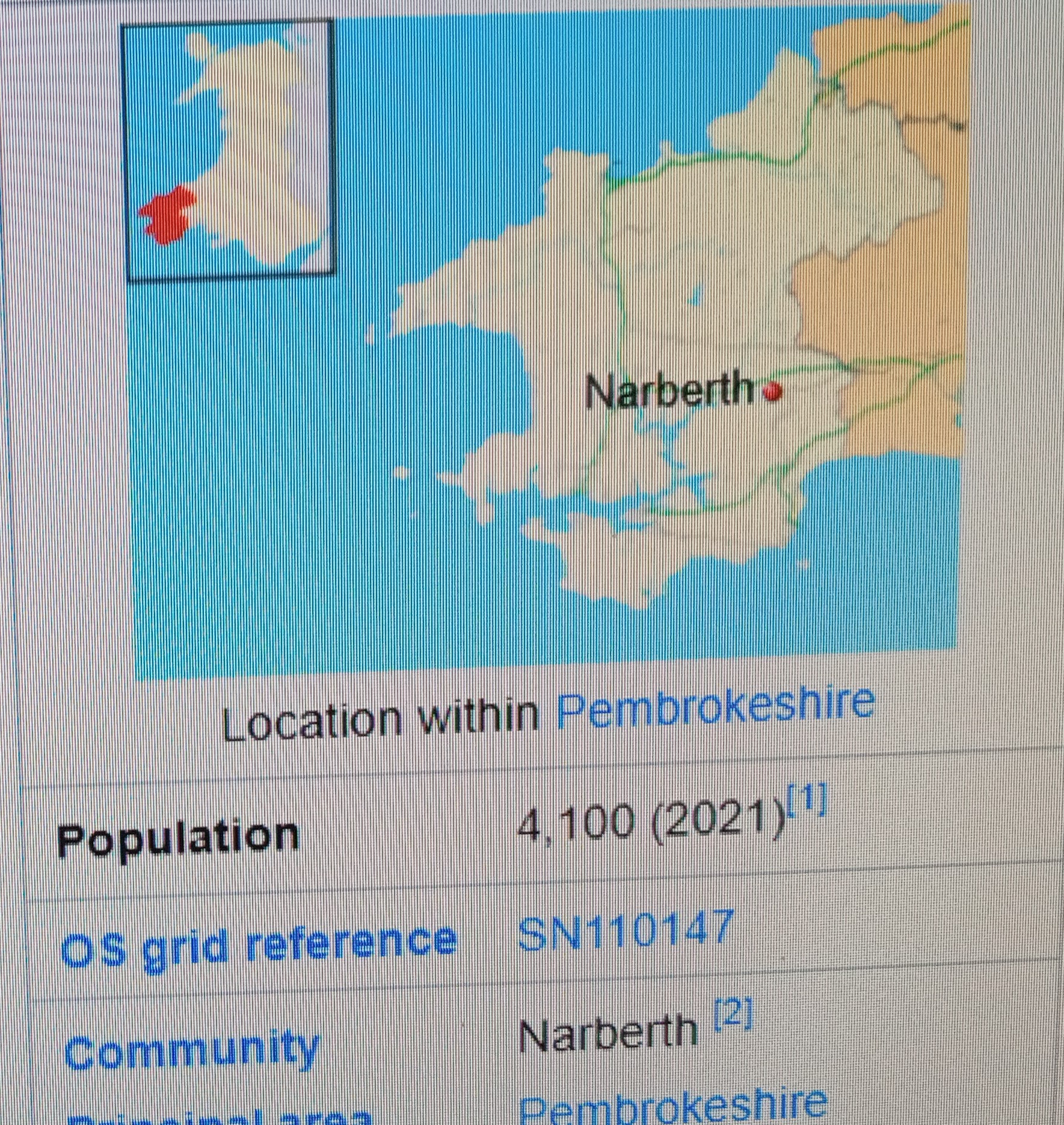 Narberth location in Pembrokeshire, Wales (source : Wikipedia)