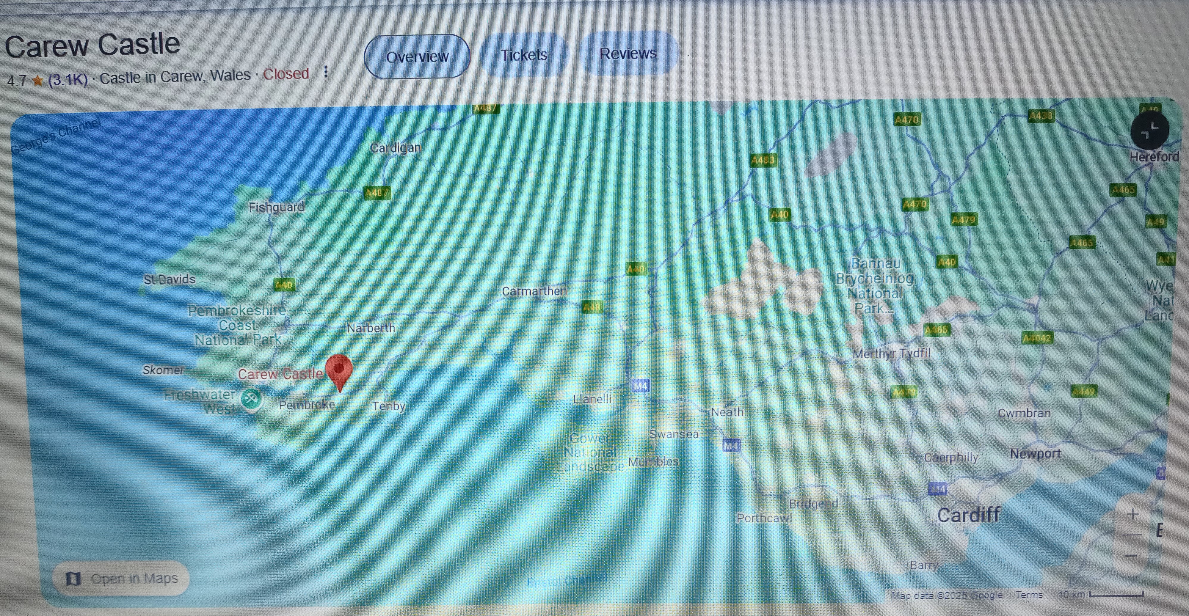 Carew Castle in Pembrokeshire, Wales (source : Google Map)
