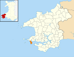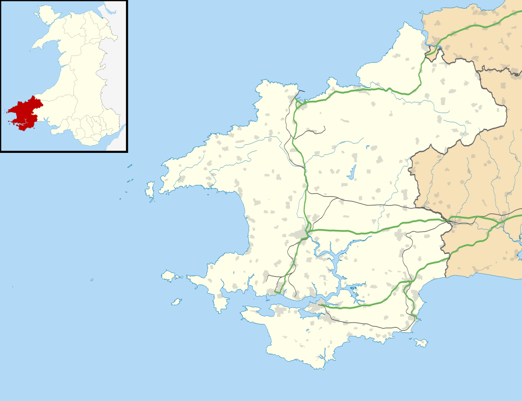 Part of a possible Roman road is noted by CADW near Llanddewi Velfrey,[9] and another near Wiston.[10] Wiston is also the location of the first Roman fort discovered in Pembrokeshire, investigated in 2013.[11] A find in north Pembrokeshire in 2024 of the likely remains of a Roman fort adds to the extent of Roman military presence in the area.[12]