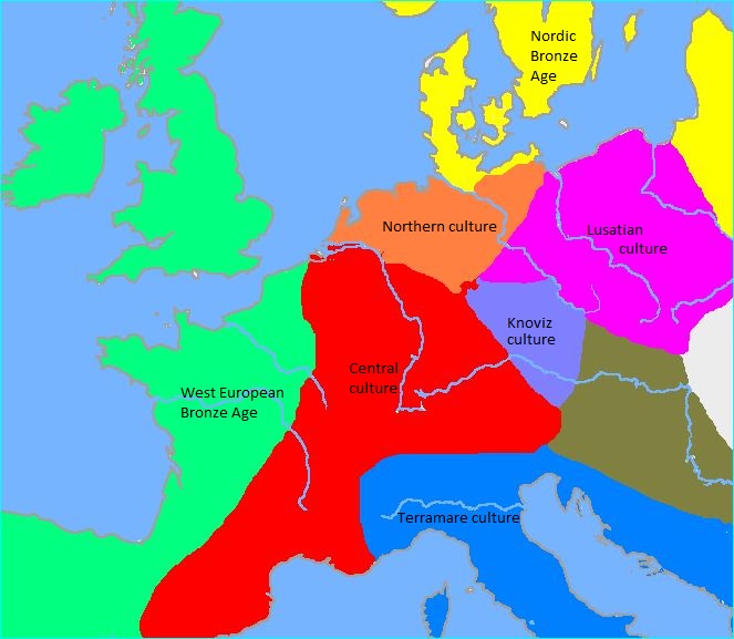 필자는 유럽의 Urnfield Culture (BC 1300 - BC 750)가 서주지역일 수 있다고 본다. (아래 지도 참조) Hallstatt Culture (BC 700-BC 450)와 La Tene Culture (BC 450- BC 1c)는 주나라가 동쪽으로 밀린 후에, 서주지역에 있던 나라들의 역사일 수 있다고 본다. 이에 대한 구체적 연구는 아직 유물의 발견수준에 머무르는 서구의 역사 부재로 가능하지 않다. 다만 그 유물들로 볼 때 상나라의 문화와 크게 다르지 않다는 것을 말하고 싶다.
