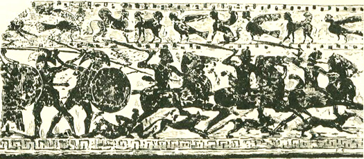 그리스인이 묘사한 개와 함께 전투하는 키메리언 전사들