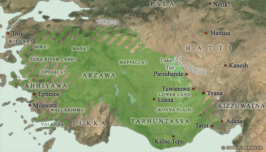BC 1450시기의 Anatolia 지역 지도 (source : Kingdom of Anatolia-Arzawa, The History Files)