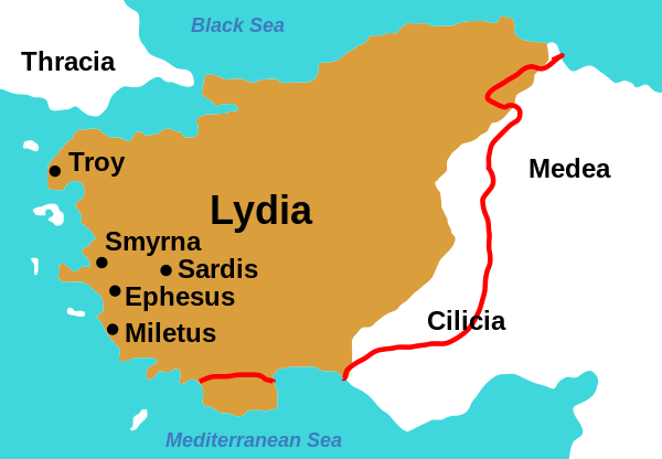 Map of the Lydian Kingdom in its final period of sovereignty under Croesus, c. 547 BC. (source : Wikipedia)