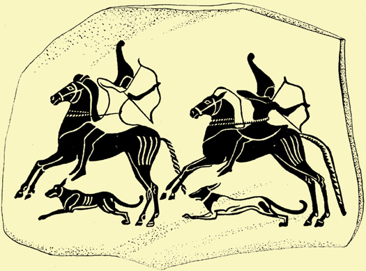 이 그림은 초기 그리스와 싸우는 키메리언을 보여준다. 말탄 키메리언 전사들은 개와 함께 하였다. (로마공화국도 동일했다)