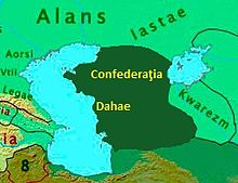 The Dahae dissolved, apparently, some time before the beginning of the 1st millennium. One of the three tribes of the Dahae confederation, the Parni, emigrated to Parthia (present-day north-eastern Iran), where they founded the Arsacid dynasty......"