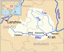중국의 강으로 황허의 지류에 해당하며 간쑤성에서 산시성을 지난다. 고대 중국에서 가장 기름진 지역이었던 관중지방을 관통하며, 이 강 바로 남쪽에 장안이 세워지기도 했다. 이 강 북쪽은 바로 오르도스라는 지방으로, 반농 반목의 경제적 특성을 띠는 지역이다. 옛날부터 중국 왕조들이 군마를 기르던 지역으로, 송나라 때 이 지역을 상실함으로써 군마 부족으로 인한 군대의 약화가 일어나기도 했다. 과거에는 이 유역을 중심으로 통일제국 진나라가 융성했고, 진나라 이후 각국의 수도들은 이 강을 중심으로 형성되었다.