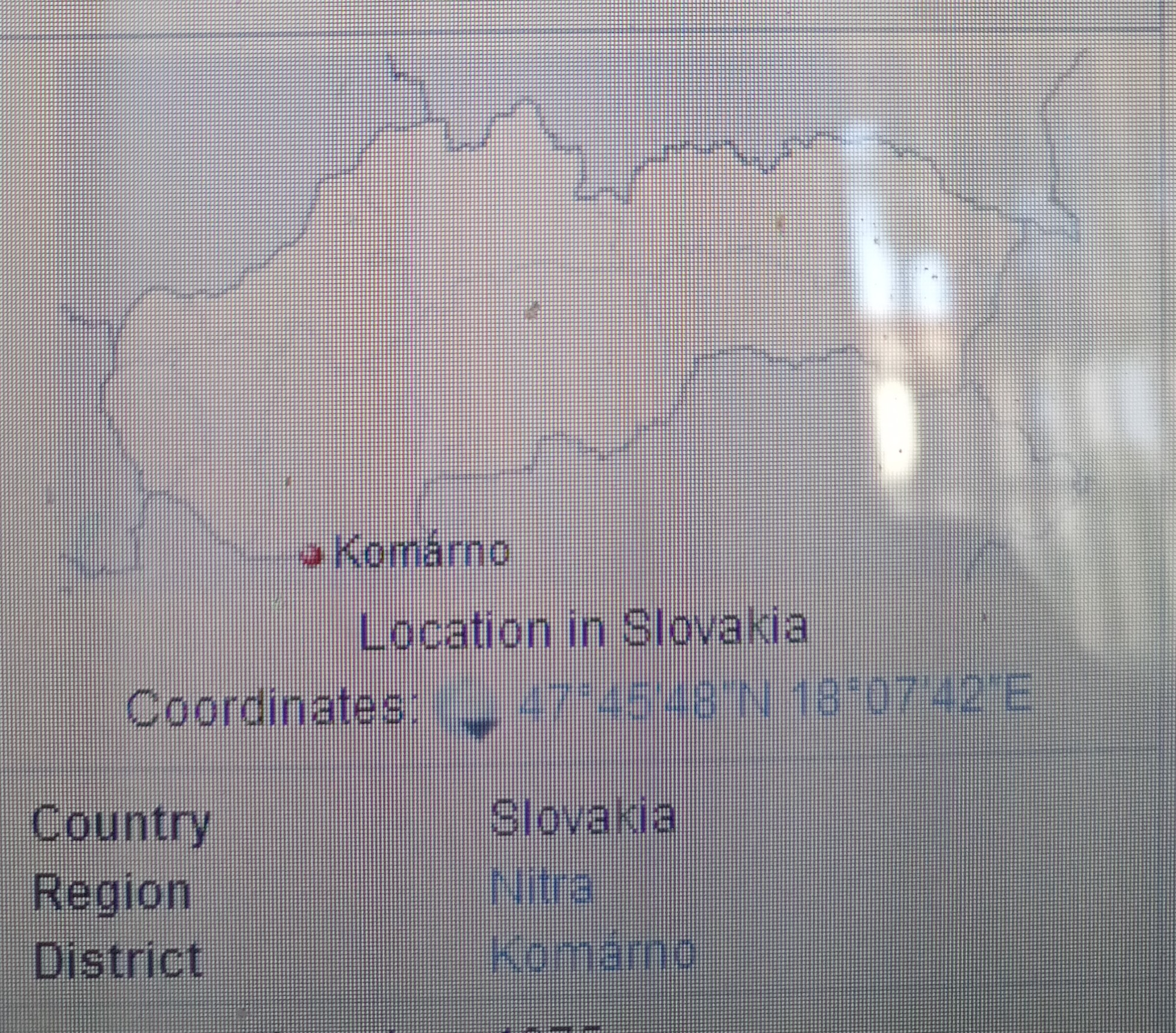 "Komárno (Hungarian: Komárom, colloquially Révkomárom, Öregkomárom, Észak-Komárom, German: Komorn, Serbian: Komoran/Коморан) is a town in Slovakia at the confluence of the Danube and the Váh rivers. Historically it was formed by the "old town" on the left bank of Danube, present day Komárno in Slovakia, and by a "new town" on the right bank, present day Komárom in Hungary, which were historically one administrative unit....Komárno is Slovakia's principal port on the Danube. It is also the center of the Hungarian community in Slovakia,....